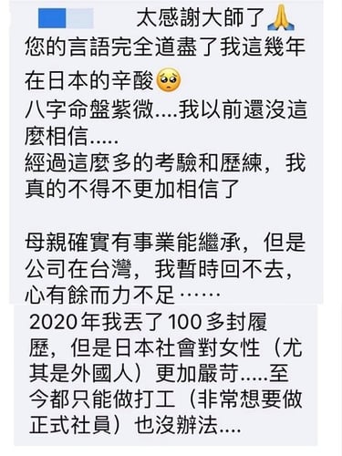 至于命主最关心的问题:能成功离婚/离开吗?撇开新恋情这可能性的话,以她的情况,除了夫妻分开的象,还要参考移民的象。以上两个象若成立,可以推论她会离开回国。